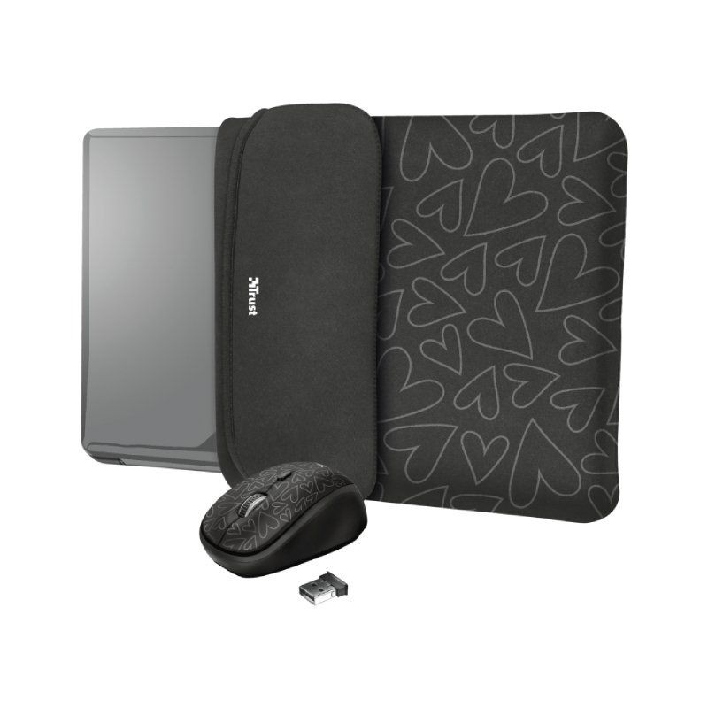 Maletín + Ratón Inalámbrico Trust Yvo Corazones para Portátiles hasta 15.6"/ Negro