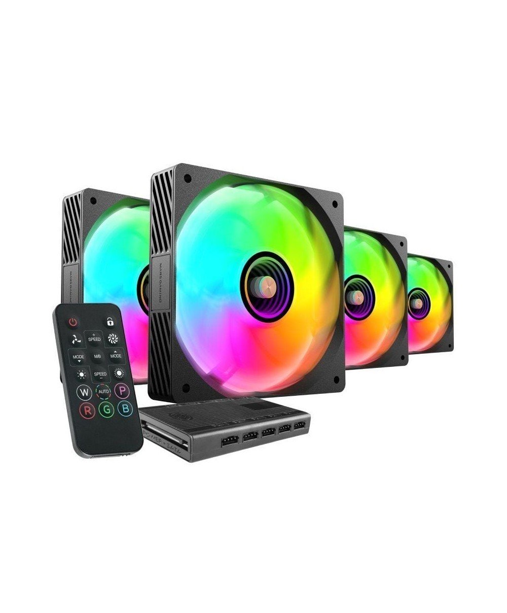 Pack 4 Ventiladores Mars Gaming 12cm + HUB + Mando a Distancia/ ARGB