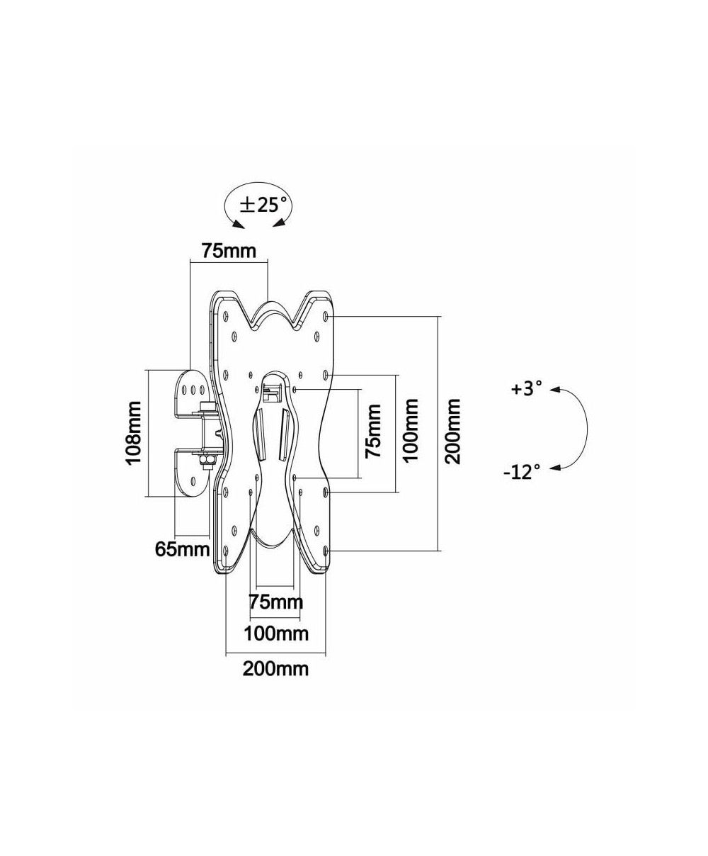 - Angulo de Inclinación: -12º / +3º (depende de la instalación y del espacio disponible). Angulo de giro: -25º / 25º (depende de la instalación y del espacio disponible). Distancia de la pared: 75mm